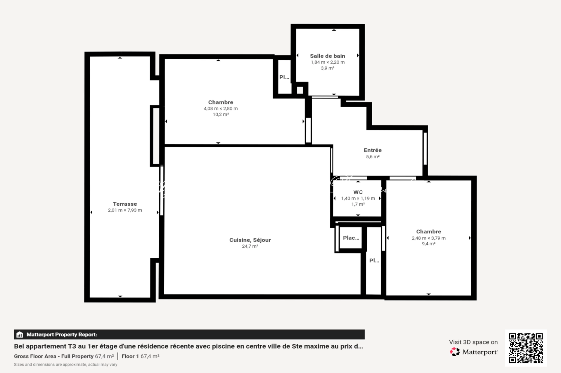 EXCLUSIVE 3D Virtual Tour - 3-room apartment for sale with panoramic sea view in Sainte-Maxime. Apartment offering a panoramic sea view of the Gulf and the village of Saint-Tropez. Ideally located a stone's throw from the beach and the town center, this rare apartment is a real favorite. Located on the 2nd and top floor of a small, quiet residence, this 3-room apartment has a beautiful 16 m² terrace facing the sea, ideal for enjoying the exceptional view. The living area of 70 m² includes a bright living room with fireplace, an open kitchen, 2 bedrooms (one with sea view), a bathroom and a separate toilet. The apartment also benefits from air conditioning and has great potential after work. It is sold with a garage and a cellar for added convenience. The annual charges are €1,540 (approximately €128 per month). Highlights: Panoramic sea view over the Gulf and Saint-Tropez, 16 m² terrace facing the sea, Ideal location close to the beach and the town center, Air conditioning, fireplace and garage included. Additional information: Annual charges: €1,540/year (€128/month): More information on the Géorisques website: www.georisques.gouv.fr This apartment is an exclusive to discover quickly!